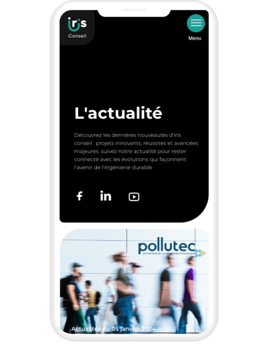IRIS Conseil, société de conseil et d'ingénierie indépendante, nous a confié une refonte complète de son identité digitale. En plus de la création de leur nouveau site WordPress, nous avons repensé l’ensemble de leur univers visuel : logo, charte graphique, supports de communication et signatures mail. Le site met en avant leurs 140 experts spécialisés dans les infrastructures de transport, l'aménagement urbain, la mobilité, l'environnement et le paysage, avec une interface optimisée pour l'expérience utilisateur et le référencement.