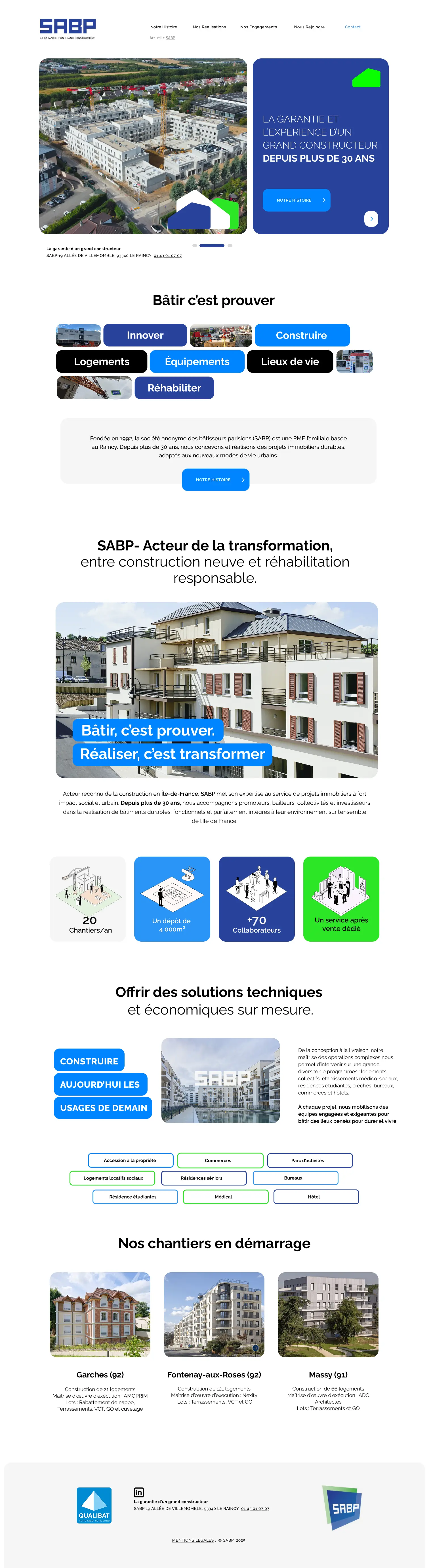 SABP Bâtisseur nous a confié la refonte complète de son site web avec un objectif clair : moderniser leur image et mieux valoriser leur expertise dans la construction. Nous avons repensé l’interface pour mettre en avant les réalisations, le savoir-faire des équipes et les engagements de l’entreprise. Le projet a combiné UI et SEO afin de proposer une navigation fluide, une structure de contenu optimisée pour le référencement naturel et un design mettant en lumière les projets réalisés. Résultat : un site plus clair, plus inspirant et pensé pour accompagner les futurs clients dans leur projet de construction.